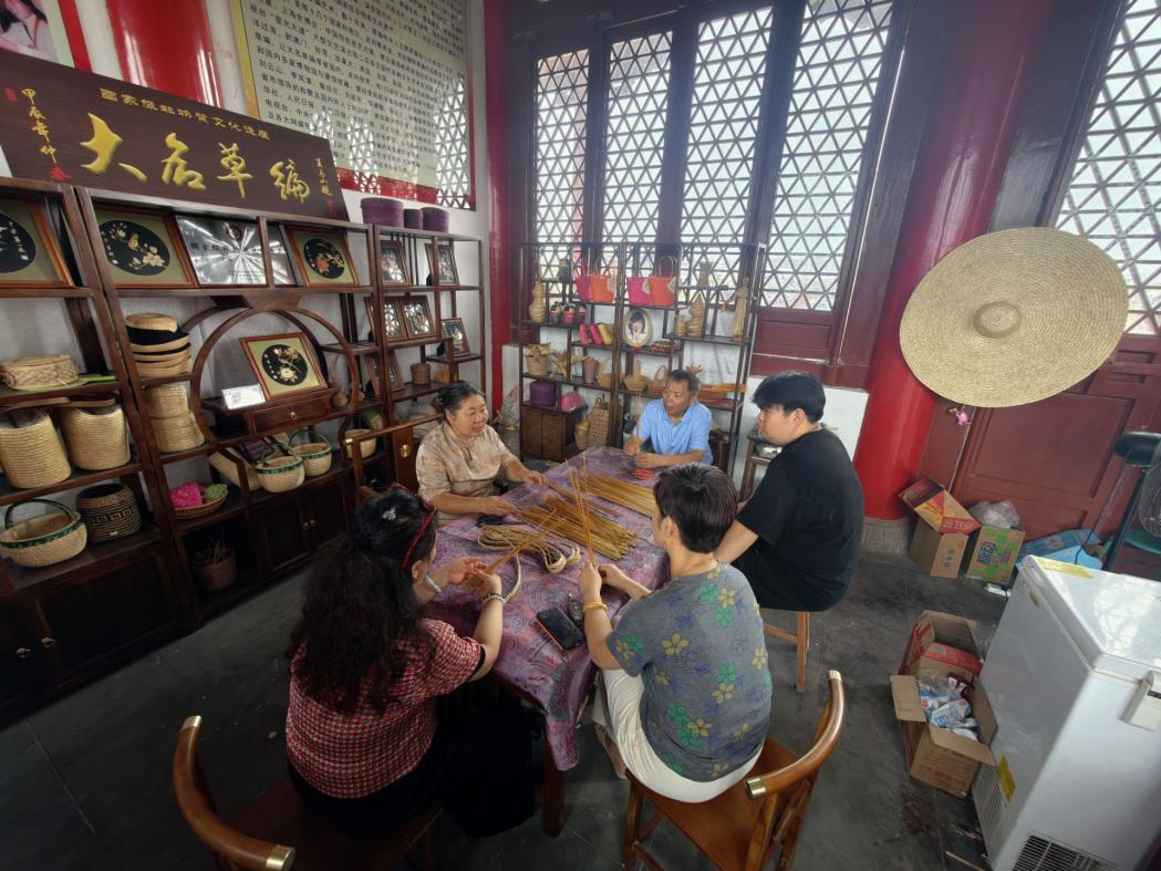 第二日的行程聚焦于文化传承与红色记忆。上午,在研究会专家的陪同下,实践队拜访了国家级非物质文化遗产“大名草编”传承人王群英老师。在王老师的工作室,队员们不仅聆听了她的细致讲解,更亲手实践了草编技艺,在一编一织中体会了传统手工艺的独特魅力与匠心精神。队员们还用镜头记录下了王老师的创作过程,为这份国家级非遗的数字化传播积累了宝贵素材。
